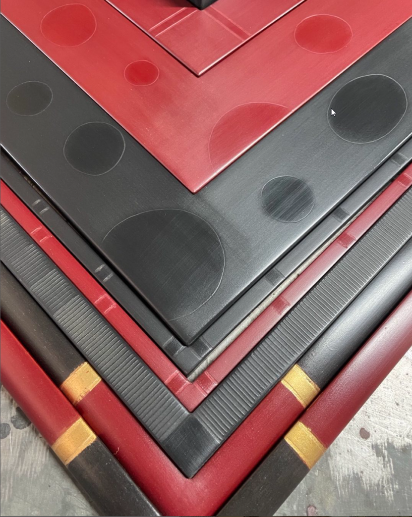 Nous utilisons aussi ces techniques dans la décoration intérieure pour la réalisation de panneaux décoratifs sur lesquels nous associons teintes et couches picturales, travaillées pour l’obtention de matières aux effets changeants.